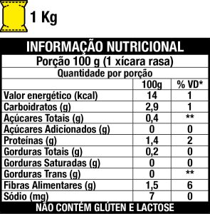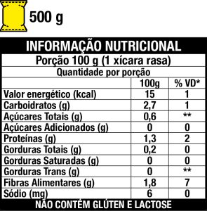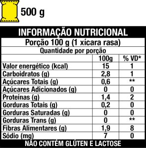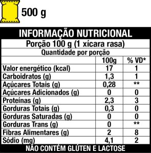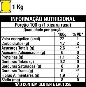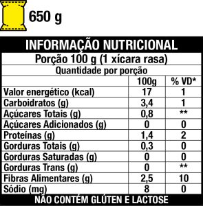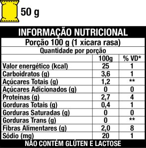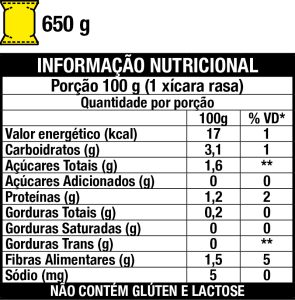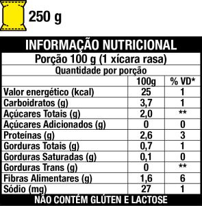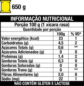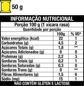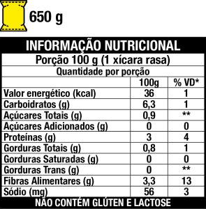 *Percentual de valores diários fornecidos pela porção, conforme Instrução Normativa nº 75 e Resolução RDC nº 429, de 8 de outubro de 2020.